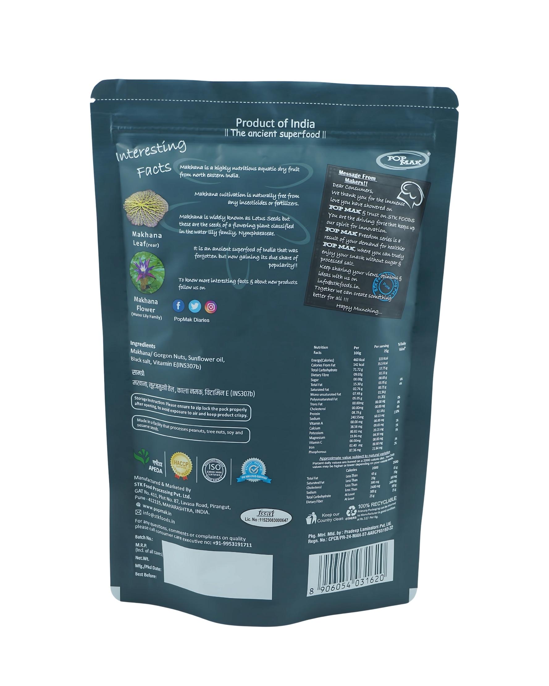 Swap unhealthy chips with POPMAK Black Salt Makhana – your wholesome, crunchy, and delicious companion for office, travel, or home snacking.